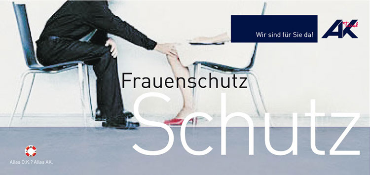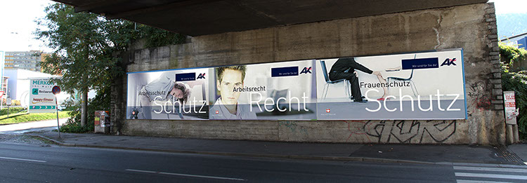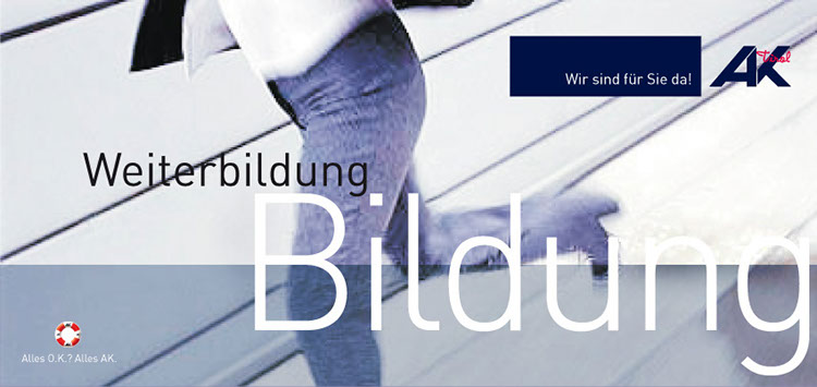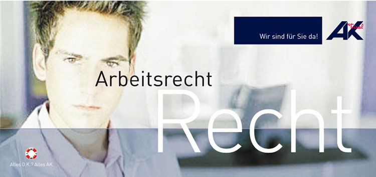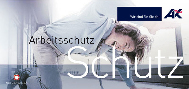 Koch CD entwickelt Plakatkampagne für die AK Tirol. Die 24 Bogen Plakatkampagne setzt auf eine moderne Bildsprache und impactstarke Schlagworte in hochstehender typogrphischer Umsetzung. Die reduzierte Form der Umsetzung verdichtet die Bildsprache der emotional dargestellten Bildaussagen. Durch die reduzierte Form der Umsetzung wird aber auch der Qualitätsanspruch in den Leistungen der AK auf die Bühne der Zeit gehoben. Der Betrachter ordnet und wertet durch diese Aufarbeitung der Themen auf den Plakatsujets, die Leistungen der AK als eine moderne zeitgemäße und kraftvolle Unterstützung der AK für die Anliegen der Arbeitnehmer und Hilfesuchenden.
