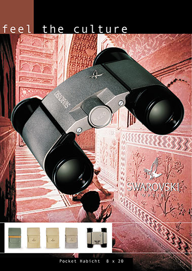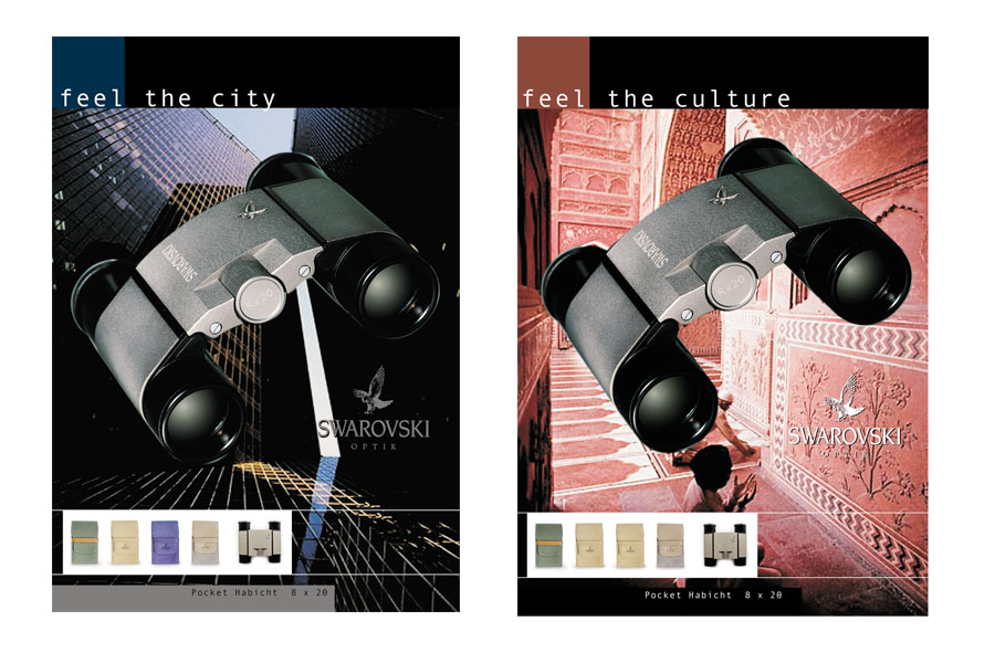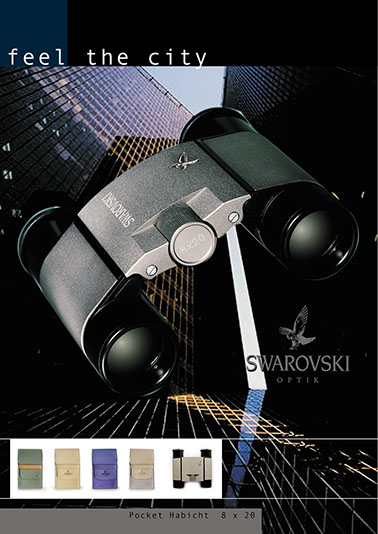 Koch CD entwickelt Anzeigenkampagne zur Motivation des General Users. Ein Swarovski Pocket Fernglas ist ein Freizeittool zur Anwendung und Freude in allen Lebensbereichen, für eine breite Zielgruppe, Kultur- Sport- Urban- und Land-Interessierter.