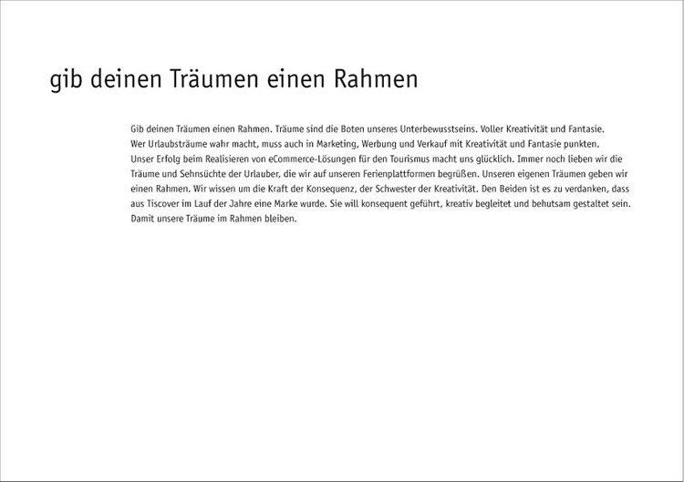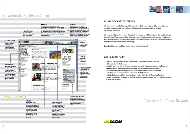 zu den europäischen Reiseservern der Spitzenklasse. 562.000 Buchungen und Reservierungsanfragen wurden allein über die Tiscover.at-Plattform im Jahr initiiert. Koch CD gestaltet den gesamten Auftritt von Tiscover.